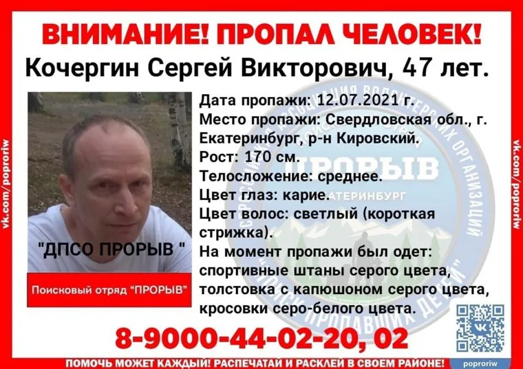 Сергей Кочергин вечером 12 июля отправился на велосипеде вокруг озера Шарташ и пропал. Поиски велись совместными силами полиции и волонтеров. 47-летний предприниматель занимался овощным бизнесом — он поставлял очищенные овощи в детские сады, лагеря, кафе и магазины Екатеринбурга.