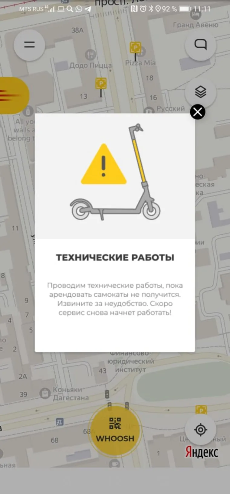 Сервис самокатов Whoosh в Екатеринбурге из-за сбоя понес убытки