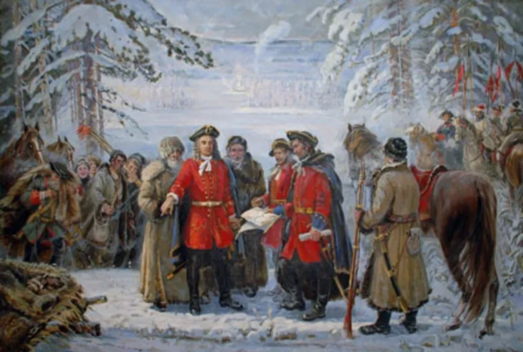 Картина «Заводу большому быть! Татищев выбирает место для Екатеринбурга»