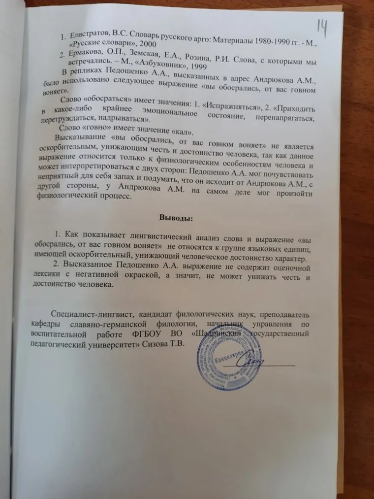 «Суд отметил постановление прокуратуры по техническим причинам. Лингвист признал фразу неоскорбительной. За что мне извиняться? Я на тот момент, действительно, почувствовал резкий запах, о чем и сказал. Весь конфликт высосан из пальца, Андрюков пиарится на этом деле», — прокомментировал Анатолий Педошенко.