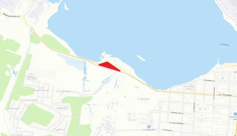 На участке, выделенном красным, расположены жилые дома (включая пятиэтажку). Их расселят