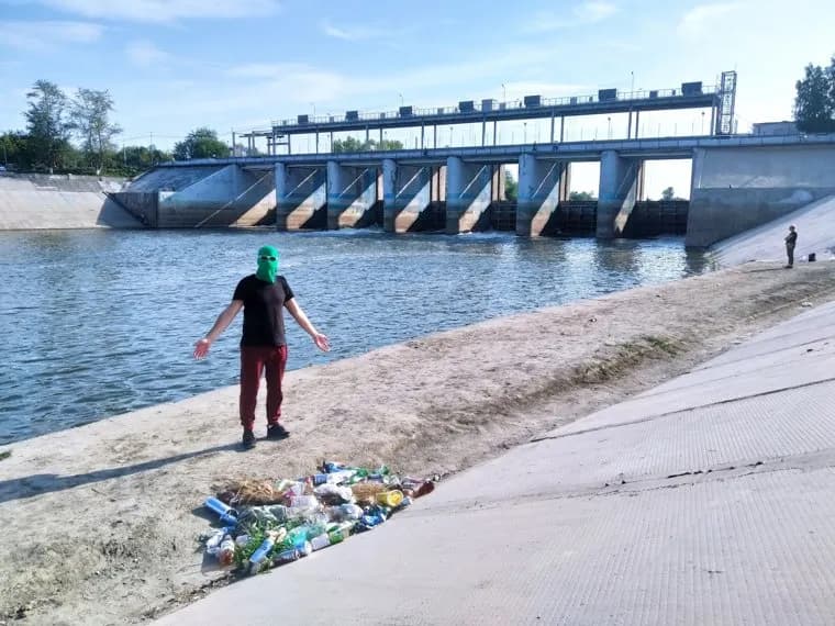 В Курган приехал челябинский активист борец со свалками Чистомэн. Первую акцию он провел на недавно отремонтированной городской набережной.