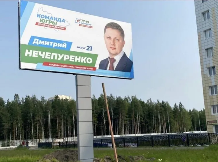 На плакате Дмитрия Нечепуренко отсутствует логотип «Единой России»