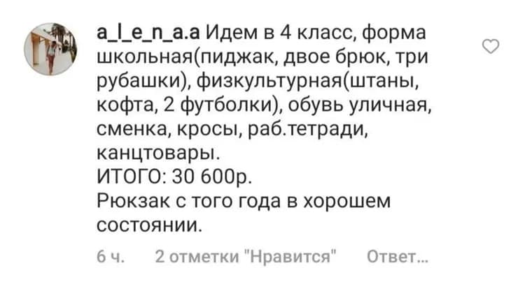 Мамы школьников в комментариях к посту пожаловались на то, что размера выплаты не хватает на школьные принадлежности. А некоторые заявили, что государство не обязано брать на себя все расходы.