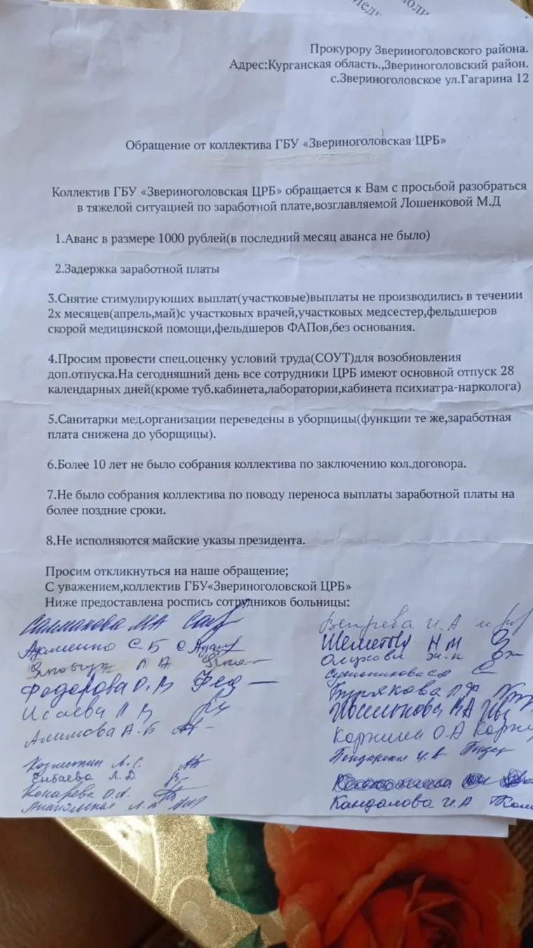 Коллектив Звериноголовской ЦРБ ждет реакцию прокуратуры и гострудинспекции