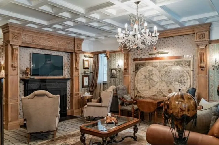 В доме имеется мужской клуб с камином и хрустальной люстрой