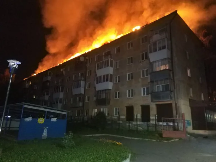 «Пожар начался с квартиры номер 15 на пятом этаже в первом подъезде, в квартире два трупа, супружеская пара», — сообщают «Ночные новости». Кровля обрушилась внутрь здания по всей площади.