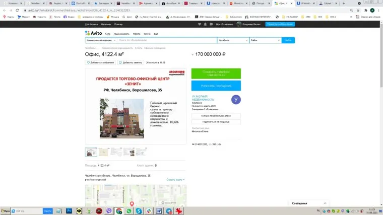 «Торгово-офисный центр „Зенит“ представляет собой пятиэтажное здание с цокольным этажом. Год ввода в эксплуатацию 2006 году. Расположен в Курчатовском районе Челябинска с высокой плотностью застройки. Объект находится на пересечении транспортных магистралей в шаговой доступности от остановочных комплексов», — говорится в тексте объявления.
