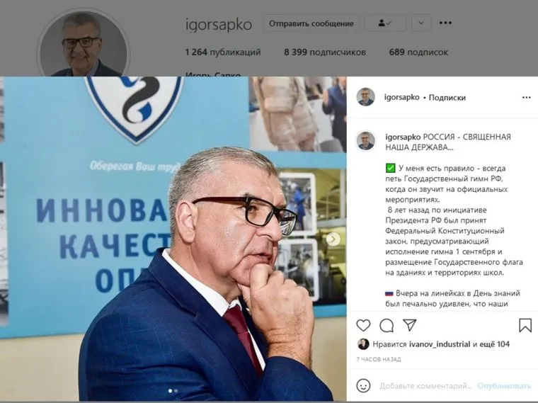 Фото: Скрин страницы Игоря Сапко в Instagram (деятельность запрещена в РФ)