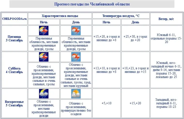 «Ночью и днем 4 сентября в отдельных районах Челябинской области ожидаются кратковременные дожди, местами сильные и очень сильные, а также ливни и грозы. Днем град, местами крупный. При этом уже днем 3 сентября, ночью и днем 4 сентября в отдельных районах ожидается усиление ветра до 25 метров в секунду и более», — пояснили URA.RU в челябинском ЦГМС.