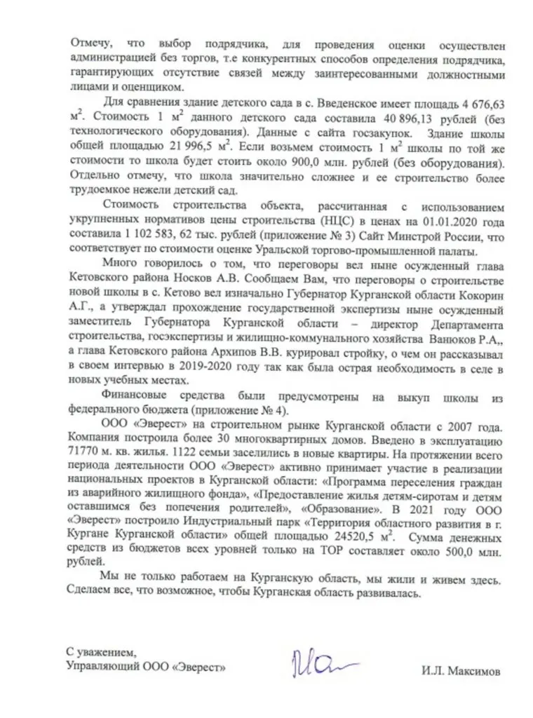 Скандал с построенной кетовской школой, которую не открыли для детей 1 сентября , получил продолжение после письма президенту РФ Владимиру Путину от родителей. Застройщик пригласил курганских чиновников, которые отказывались выкупить школу по заявленной строителями цене, на встречу. В доказательство обоснования стоимости строители приложили расчет своих затрат. Информация размещена на сайте застройщика — компании «Эверест».
