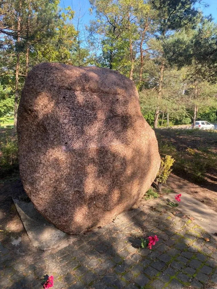 Мемориальный камень на месте начала операции по форсированию Киш-озера в октябре 1944 года