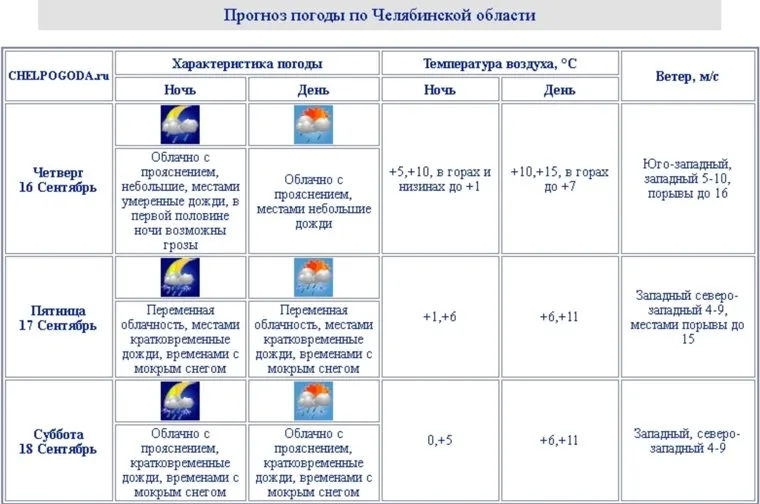В ночь на 16 сентября в регионе начнутся дожди, а в отдельных районах ожидаются последние осенние грозы. Температура упадет до одного градуса тепла, чтобы днем четверга подняться не выше 7-15 градусов. Непогода будет сопровождаться порывами ветра, достигающими 15 метров в секунду.