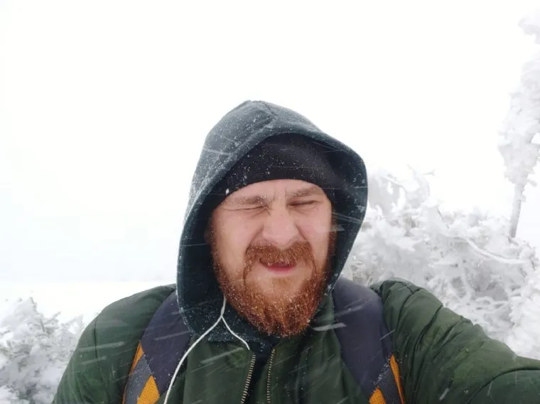 «Пошел в одиночный поход на хребет Нургуш, думал побродить в горах, полюбоваться золотой осенью. А наверху — совершенно зимние метели и вьюги. Там даже стоять невозможно — заносит снегом, видимость нулевая, следы заметает», — рассказал на своей странице во «Вконтакте» Александр Олексюк.