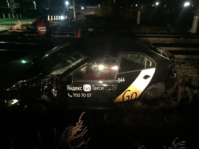 На фото, выложенном в официальном telegram-канале транспортной прокуратуры, видно, что пострадала машина «Яндекс-такси». В пресс-службе «Яндекс-такси» на звонок URA.RU не ответили.