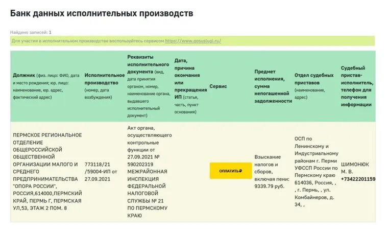 Налоговая служба взыскивает с Пермского регтоделения «ОПОРЫ РОССИИ» 9339,79 рублей