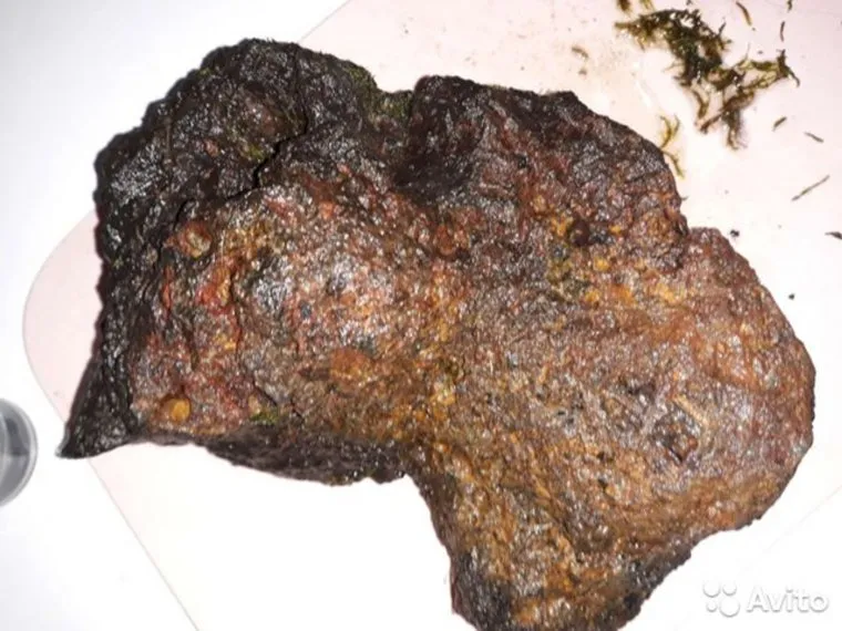 В описании продавец сообщает, что кусок метеорита был найден в Нытвенском районе. Небесное тело магнитится и весит 3,6 кг. Подтверждений, что метеорит настоящий, в объявлении не предоставлено.