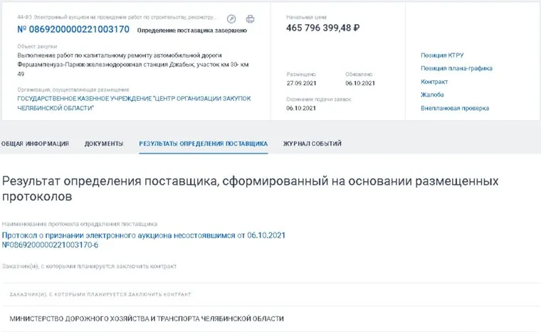 «Аукцион признан несостоявшимся в соответствии с частью 16 статьи 66 44-ФЗ. До окончания подачи заявок не было подано ни одной заявки на участие», — говорится в итоговом протоколе (есть в распоряжении URA.RU).