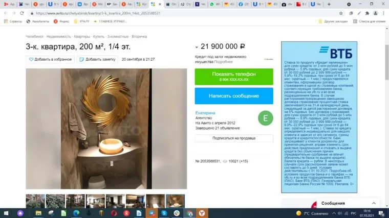В Челябинске выставили на продажу самую дорогую трехкомнатную квартиру. Жилье в Центральном районе по улице Коммуны, 151 обойдется покупателю в 21 млн 900 тыс. рублей, следует из объявления на сайте Avito.