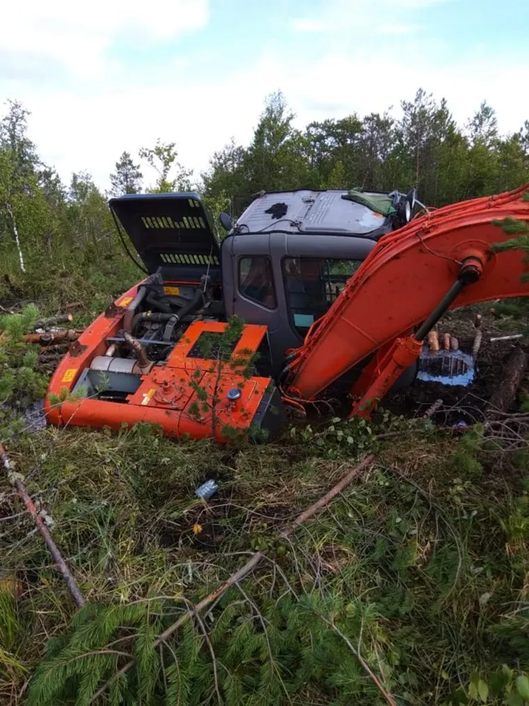 Экскаватор компании «Ростелеком», застрявший в болоте