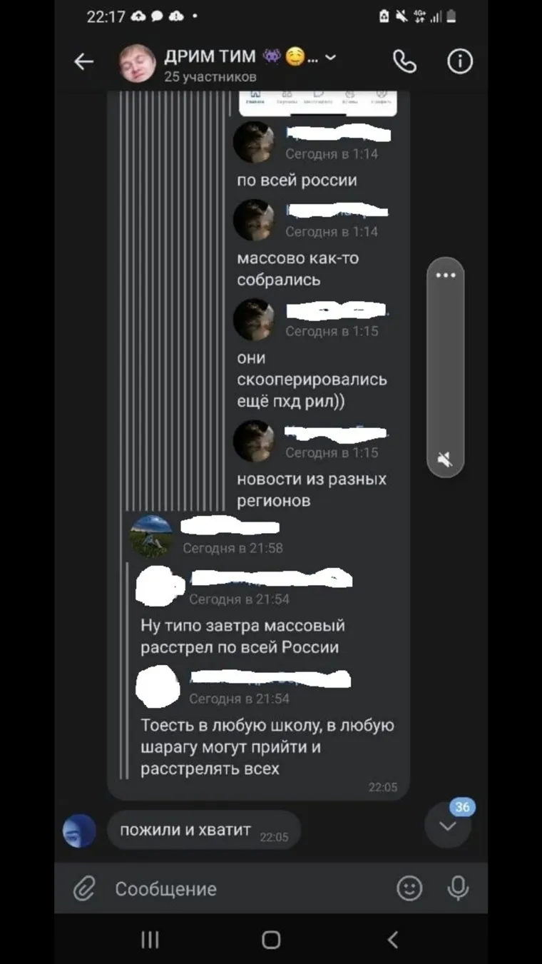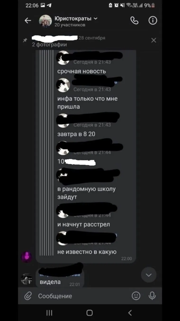 Источник: в чатах школ РФ шлют сообщения о готовящейся стрельбе. Скрины