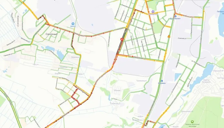 Движение также затруднено из-за ремонтных работ. По данным сервиса «Яндекс.Карты», дублер Новосибирской улицы частично перекрыт с 30 сентября по 31 октября. Сильный затор образовался от Екатеринбургской кольцевой автодороги в сторону Объездной по Лучистой и 2-й Новосибирской улицам. Пробки также наблюдаются на Полевском тракте.