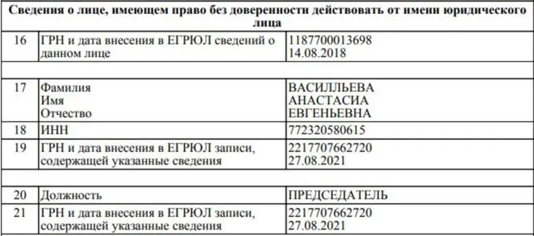 В Едином государственном реестре юридических лиц глава «Альянса врачей» указана как «Анастасиа Василльева»