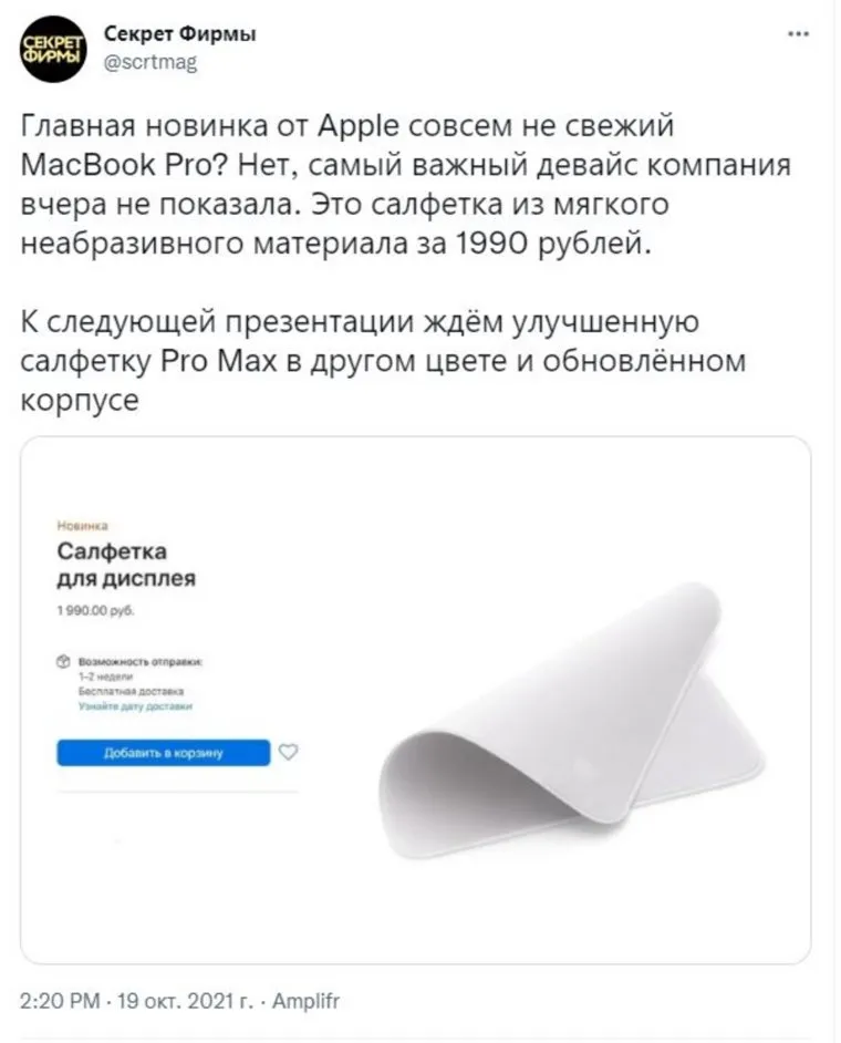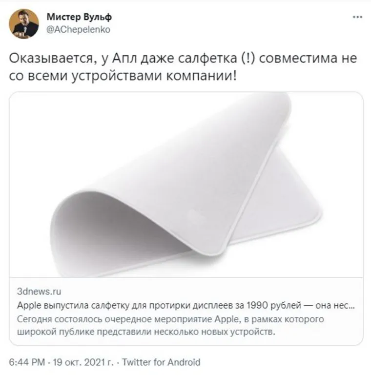 В России за сутки раскупили салфетки от Apple за 2 тысячи рублей. Подборка мемов