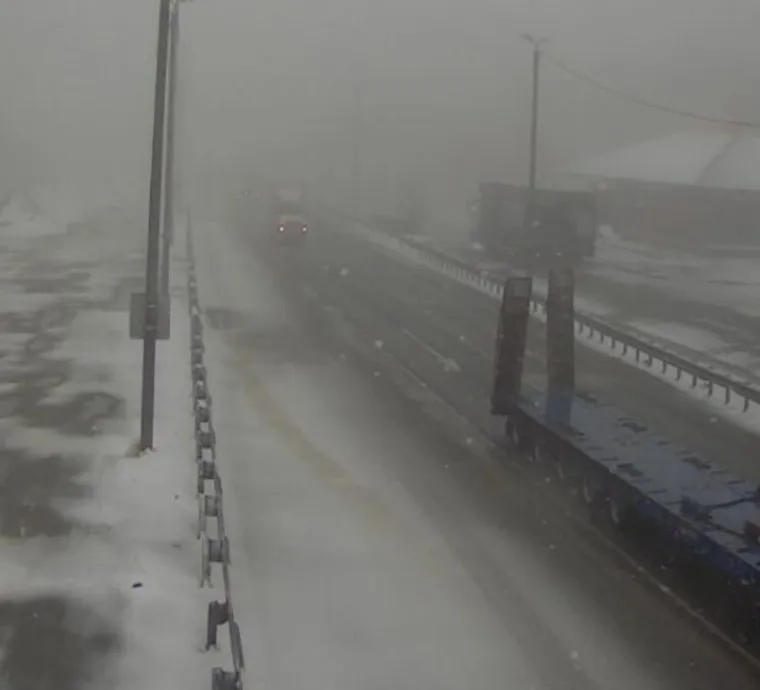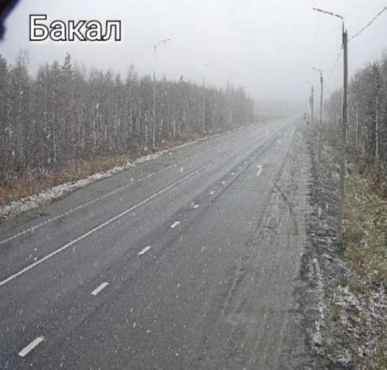Федеральную трассу М-5 в горнозаводской зоне Челябинской области 20 октября начинает заваливать снегом. Фото дороги пользователи выложили в социальную сеть.