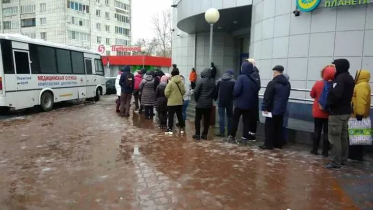 Пермяки выстроились в многочасовые очереди за вакциной. Фото