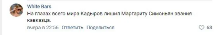 Главный редактор RT Маргарита Симоньян раскритиковала лиц кавказских национальностей, которые приезжают в Москву. Ее комментарии касались нападения четырех мужчин на отца с ребенком в поселке Ватутинки в Новой Москве. После этого критике со стороны главы Чечни Рамзана Кадырова подверглась сама Симоньян. Мнения пользователей социальных сетей относительно этого конфликта разделились, но некоторые уже начали готовить попкорн, чтобы следит за его развитием.