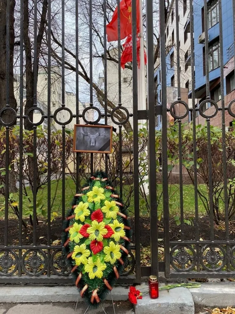 Найденному в машине Рашкина лосю соорудили мемориал у офиса КПРФ. Фото