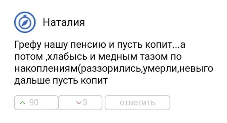 Пользователи соцсетей с негодованием и злостью отнеслись к предложению главы Сбербанка Германа Греф накопить россиянам на пенсию самостоятельно, а государство будет им в этом помогать. Одни искренне не понимают, что такое сбережения, другие — желают Грефу самому накопить на пенсию.