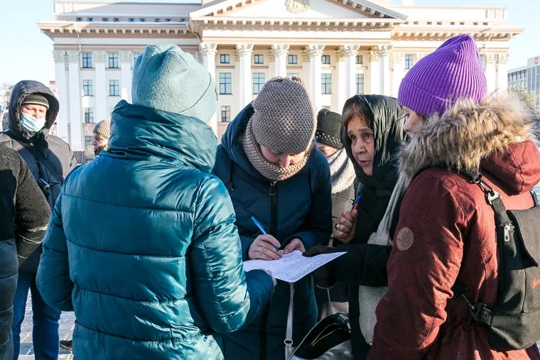 Тюменцы устроили сбор у правительства из-за вакцинации. «Превращают страну в концлагерь». Фото