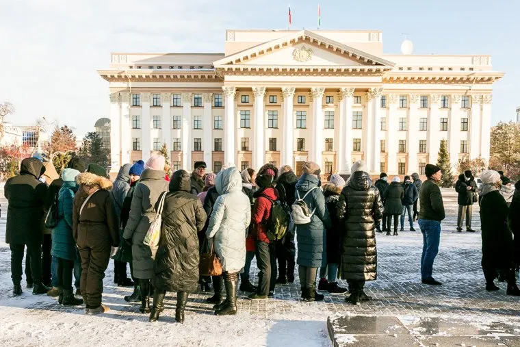 Какое-то время активисты заканчивали сбор подписей, а затем двинулись в сторону правительства. Силовики не пустили граждан через центральный вход, объяснив, что обращение примут в канцелярии, с обратной стороны здания. Туда зашли несколько представителей, чтобы зарегистрировать обращение к губернатору Александру Моору. В нем они высказываются против обязательной вакцинации и введения QR-кодов. Подпись под документом поставили 1723 жителя Тюмени.