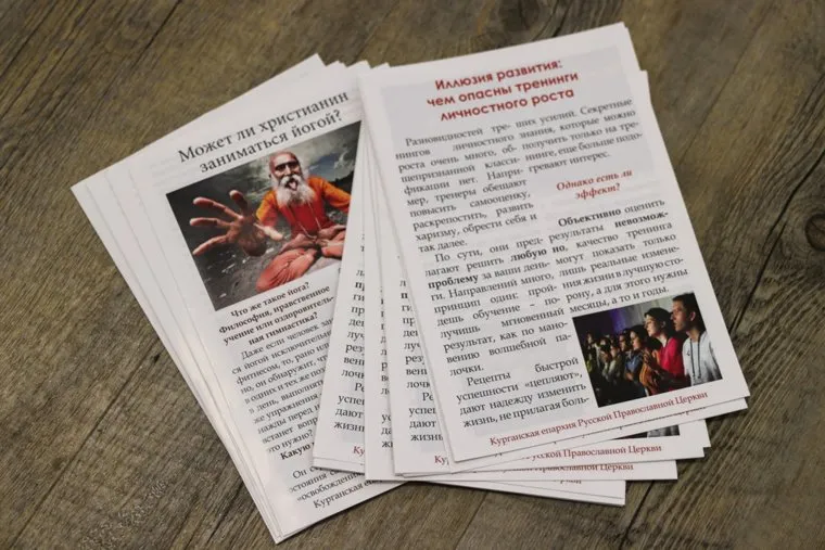 Листовки о духовной опасности йоги и психотренингов выпустила Курганская епархия. В одном из материалов священнослужители заявляют, что философия йоги противоречит христианскому вероучению. Информация о новых просветительских материалах опубликована на странице Курганской епархии в соцсети «ВКонтакте».