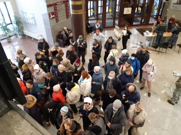 На рассмотрение иска против введения QR-кодов к Свердловскому облсуду пришли сотни местных жителей. Об этом с места событий сообщает корреспондент URA.RU.
