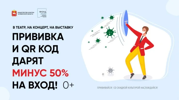 «В списке шесть областных театров. Среди них театр кукол, Молодежный театр, драматический и оперный театры, Камерный театр, а также театр „Омнибус“ в Златоусте. Кроме того, половинную скидку на билет сделавшим прививки и предъявившим QR-код южноуральцам готовы предоставить Челябинская филармония, мультимедийный исторический парк „Россия — Моя история“, а также исторический музей Южного Урала и музей изобразительных искусств», — пояснили URA.RU в ведомстве.