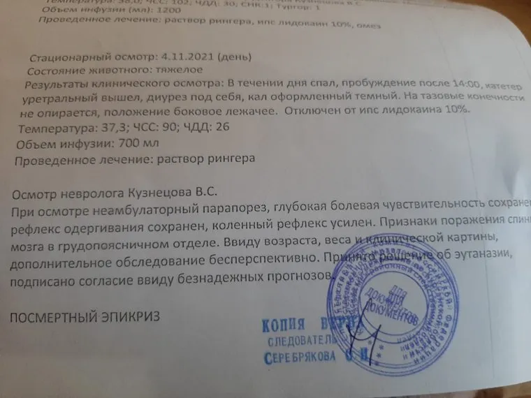 Заключение ветеринарного врача по повреждениям избитой мигрантом собаки