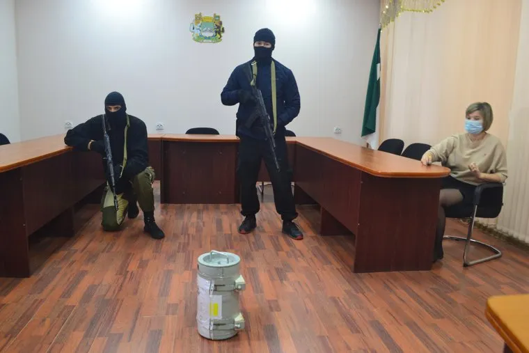 Курганские силовые ведомства, в том числе ФСБ, отработали на учениях вероятное нападение на чиновников администрации города. Условные террористы взяли людей в заложники и угрожали взорвать. Об этом URA.RU сообщили в пресс-службе УФСБ России по Курганской области.
