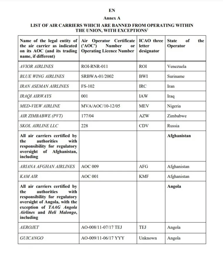 Европейская комиссия внесла российскую авиакомпанию в список запрещенных. Теперь компания «Скол» больше не имеет права действовать в зоне Евросоюза. Документ с таким решением находится на официальном сайте организации.