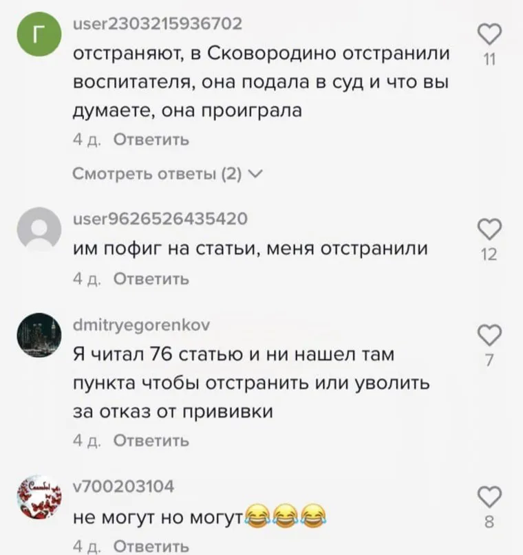 Комментаторы оставили свое мнение по этому поводу под одним из видео пользователя с ником awakened_samurai. В своем видеоролике он говорил о том, что граждан не могут уволить даже при отсутствии QR-кода. В комментариях под ним некоторые россияне пожаловались на отстранения от работы.