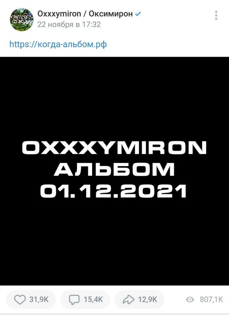 Оксимирон (Oxxxymiron) пообещал выложить новый альбом 1 декабря, но все еще этого не сделал