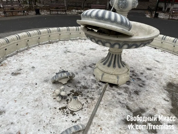 «К поломке причастны три девушки, которые во время вечерней прогулки решили сфотографироваться возле фонтана. Одна из них попыталась залезть на самый верх фонтана, однако конструкция не выдержала и упала. После этого девушки спешно покинули место происшествия», — написали в группе «Miass.Live» в социальной сети «ВКонтакте».