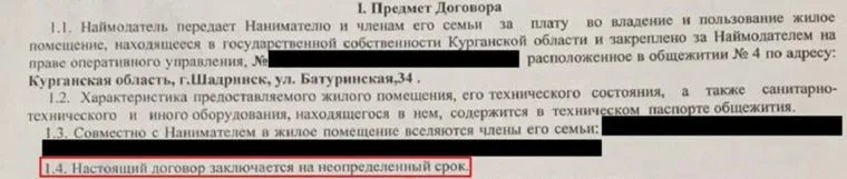 «Это вторая попытка директора Шадринского политехнического колледжа (депутата гордумы Шадринска) Михаила Харлова выселить семьи из общежития на улицу. В 2020 году больше десятка семей получили уведомление, в котором говорилось, что договор с ними был заключен в 2018 году на один год и что согласно договору наймодатель может расторгнуть его в одностороннем порядке. В действительности договор с жильцами был заключен на неопределенный срок, а расторгнуть его в одностороннем порядке могут только наниматели. После указания на эти пункты договора, уведомление просили считать недействительным. В этом году Харлов прислал новое уведомление, в котором ссылается на ст. 100 Жилищного кодекса: просит договор с жильцами считать недействительным, так как нет решения собственника помещений — департамента образования и науки», — рассказал Леонид Коробицын.
