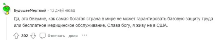 Иностранные комментаторы, в том числе из Канады и США всерьез восхитились и позавидовали условиям труда россиян. Такая реакция последовала в ответ на пост одного из пользователей американского портала Reddit, который описал, сколько дней основного отпуска, а также по больничным, беременности и родам дается гражданам России.