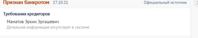 Кредитором Александра Новокрещенова стал Эркин Маматов