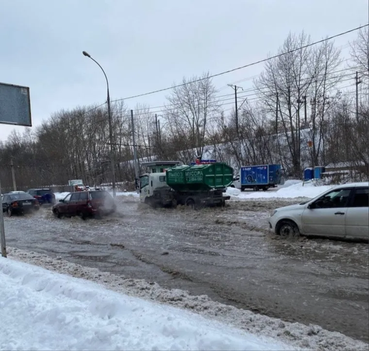 В Перми из-за прорыва водовода затопило часть улицы Локомотивной и площадь Гайдара. О коммунальной аварии сообщается на сайте ресурсоснабжающей компании «Новогор-Прикамье».