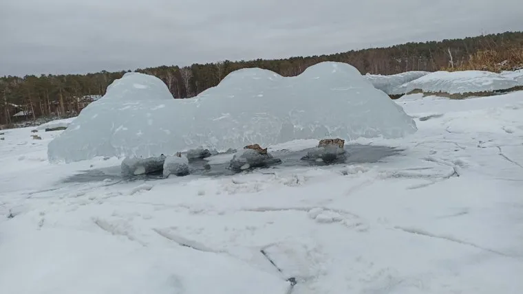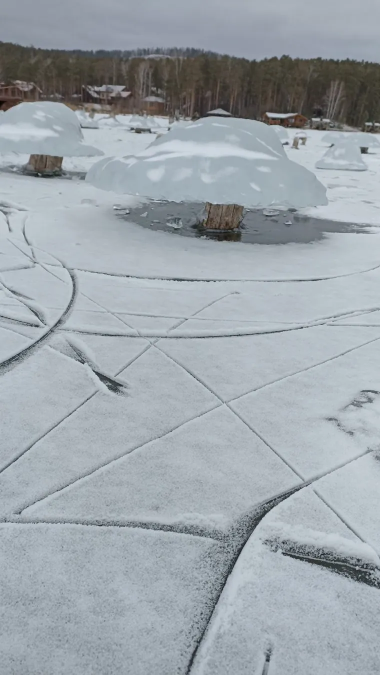 На озере Тургояк (Челябинская область) «выросли» ледяные грибы. Фото необычного явления опубликовали в социальных сетях.