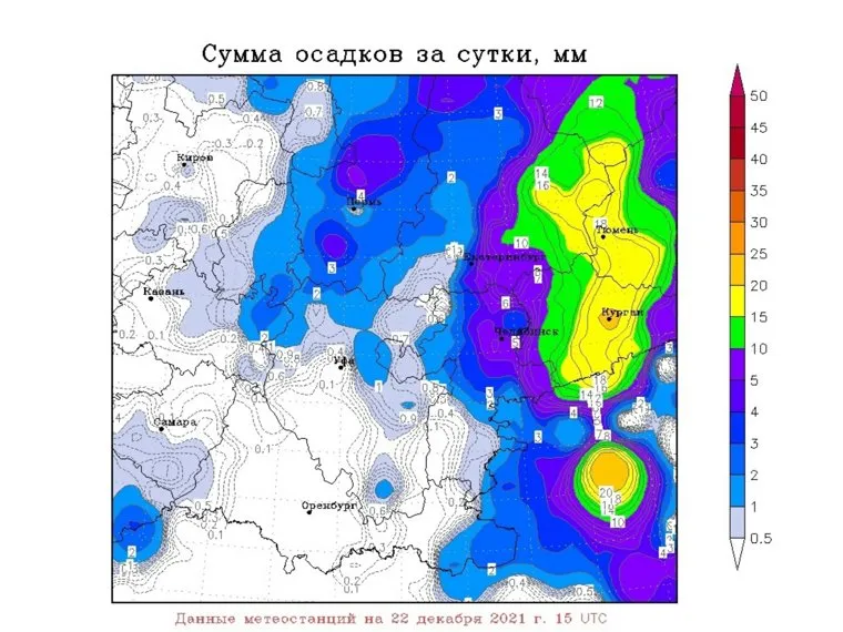 По его словам, за сутки в Кургане выпало 20 мм осадков, что составило 95% от месячной нормы. Из-за этого высота снежного покрова увеличилась с 17 до 29 см. Винштейн отметил, что такие снегопады проходят редко, а последнее подобное явление зафиксировали 24 декабря 1975 года. Тогда за сутки выпал 21 мм осадков, что является рекордом для декабря в Кургане.